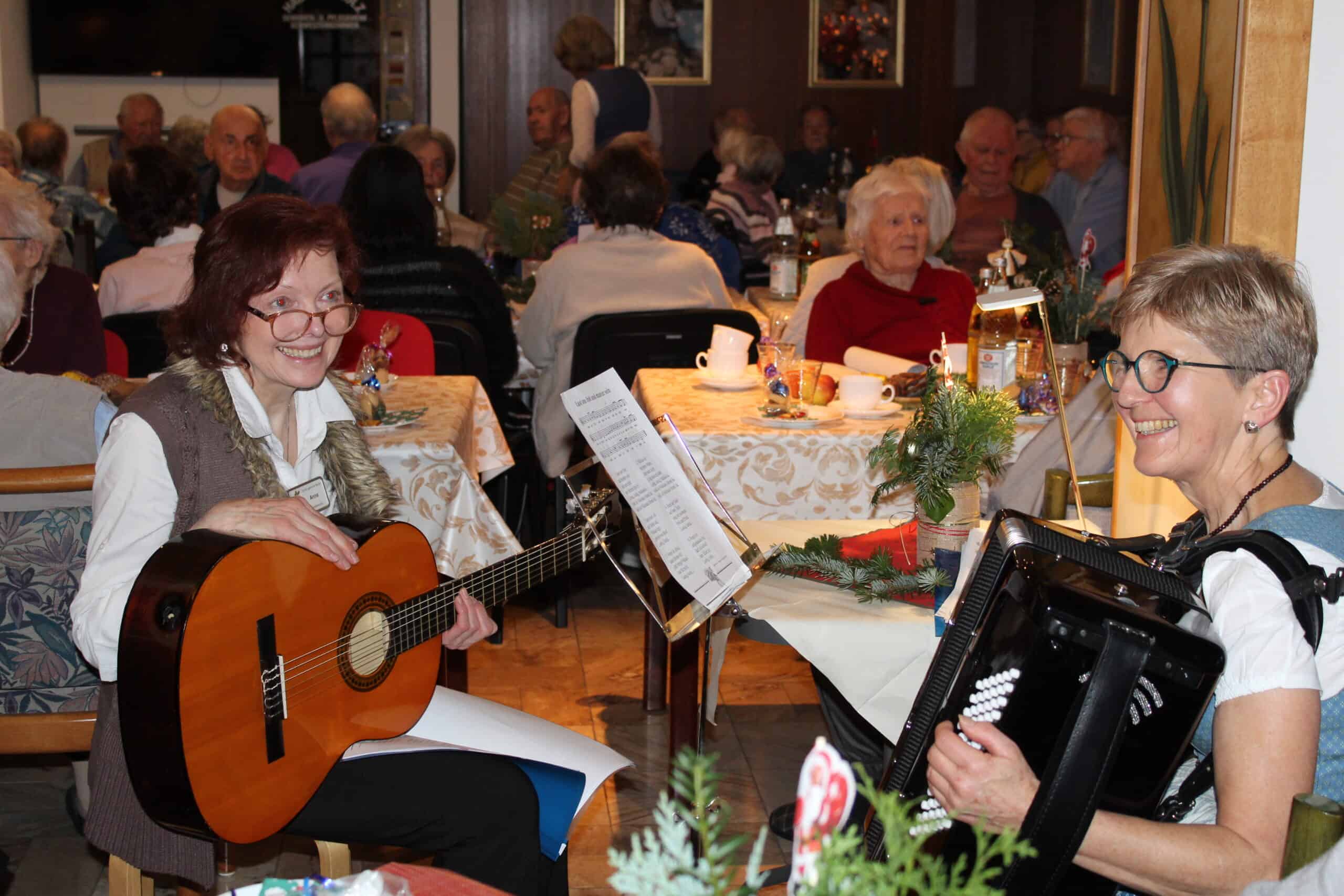 Besonders bezaubernd war der musikalische Beitrag von Anna und Brigitte, die mit ihrer Gitarre und der Ziach die Bewohner verzauberten und viele bekannte Weihnachtslieder spielten. Zwischendurch wurden berührende Geschichten und Gedichte von Alexandra, der Leitung der Sozialbetreuung, vorgelesen. Sooo scheee!